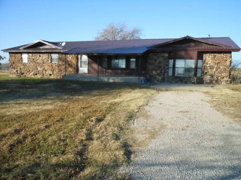 This ranch style stone home has 3 bedrooms, 2 bathes and 2280 sq. ft. of living space. It has a covered front porch, canopy back entrance and a metal roof. There is a metal chicken coop and great garden spot as well.