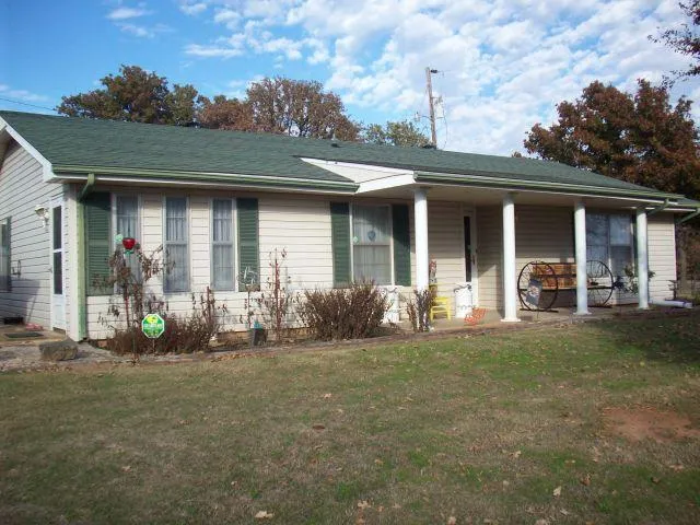 2 bedroom, 2 bath house w/vinyl siding has covered front porch that offers views of the Arbuckle Mountains.