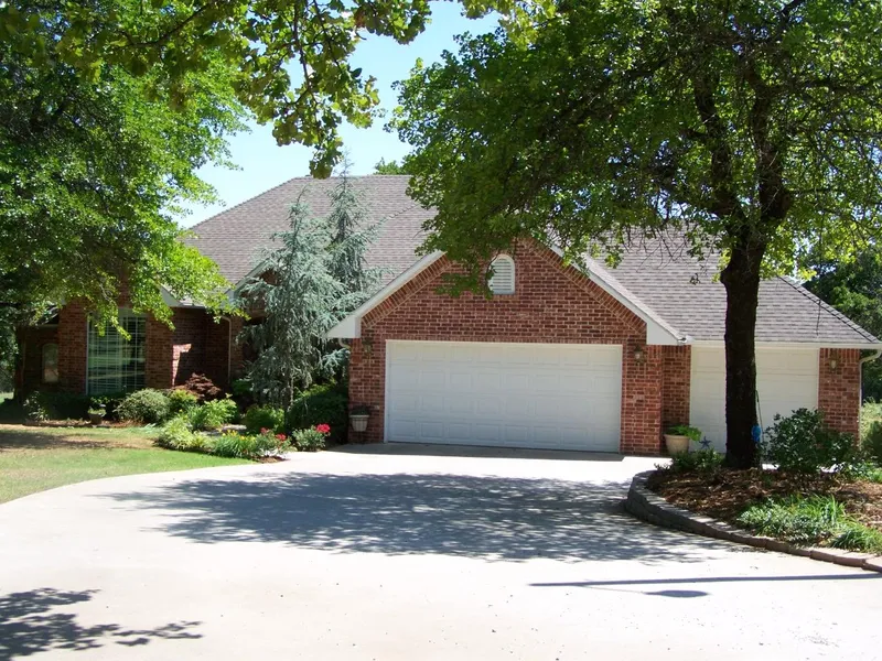 Custom built 2004 brick home on 3.57 acres, approx..30 min from Norman, 20 min from Purcell, 10 min from Pauls Valley. Enter into 10' ceilings, shiny hardwood floors, cherry stained woodwork, crown molding, plantation shutters, custom valances & curtains, pillars partition formal dining area, office or music room with French doors, large & open living room has gas log fireplace, is open to kitchen bar, breakfast nook. Kitchen has jetta countertops, pantry, electric cook stove, abundant cabinet space, dishwasher & refrigerator. Split bedrooms with master bedroom & bath on one end and 2 guest bedrooms & bath on the other. Hall leading to master bdrm. is angled with recessed display nook. Master bath has vanity with dble. sinks, garden tub, tiled shower, large walk-in closet with built in shelves. Triple car garage is oversized, home is total elec. other than gas log fireplace, OG&E e...