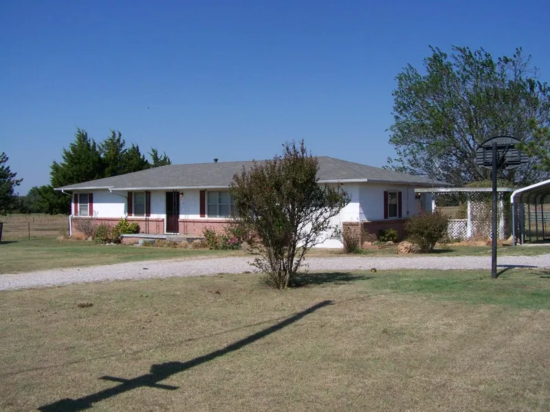Just Right for a horse! Has 2 stall lean-to, 2 pastures, pond, 3 bdrm., 1 bath rustic home. Extra western detail inside crafted by the talented owner. Large kitchen recently remodeled with linoleum tiles on floor, formica tile counters, gas cook stove, back up gas wall furnace. Central heat and air, 1 car garage, strg. bldg. or shed, patio, septic tank plus lagoon. Brand New Roof 10/2015. Propane tank is owned