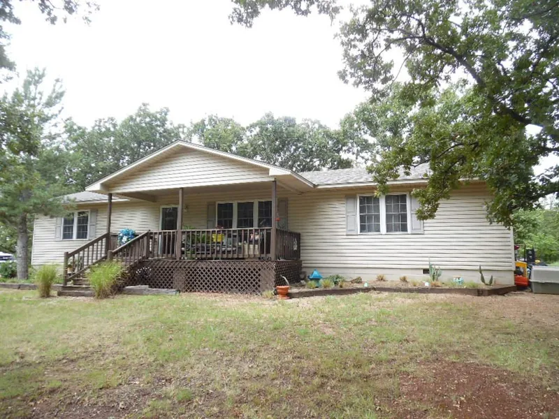 A lovely modular home set back among trees and flowers on 1.59 acres. Open floor plan with bar separating living room and kitchen. Glass sliding door out to a deck overlooking a beautiful flower garden. Large master bedroom with walk-in closet and a huge master bath with tub and shower. There are two bedrooms on the opposite side of the living room with nice bath off the hallway. A nice utility room with a door to the deck. Storage closet. Directions: From the 4-way stop in Wynnewood, go east on Hwy 29 approximately 6 miles. Turn left on CR 3350 and go approximately 2 miles to the property. House will be on the left side of the road. Built in 2003.