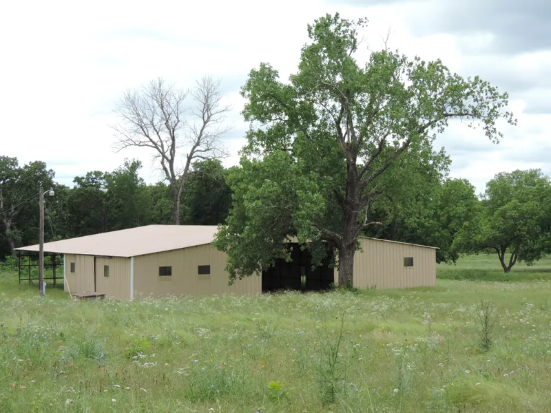Beautiful 60 acres m/l- 80x80 barn with 20x40 work shop that has a concrete floor and electricity, barn also has a lean-to and storage area. Property features a water well, county road frontage, wet weather creek, good hay production, a nice pond, building site and many producing Pecan trees. This land is a must see and would be perfect for hunting and livestock.