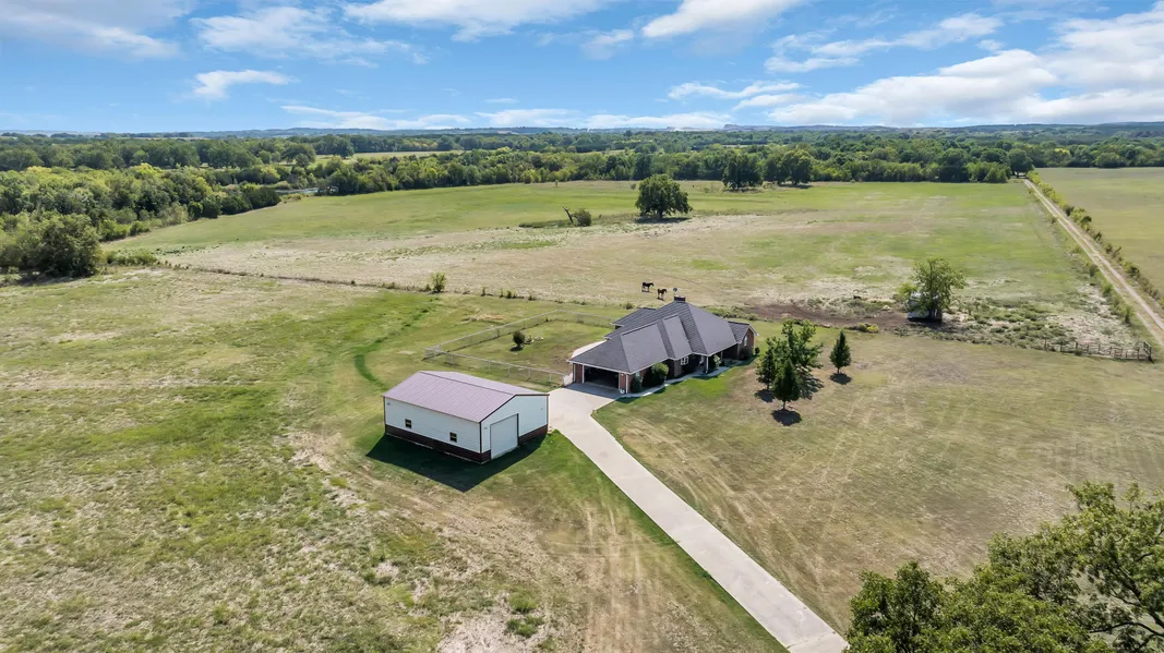 Escape to your own slice of paradise with this custom built 2003 ranch style home nestled on 70 lush acres. Conveniently located just miles west of I-35, this property offers tranquility and convenience, making it perfect for outdoor enthusiasts, horse or cattle farmers, or anyone seeking a serene lifestyle. Property Highlights: 10 Acre Watershed Lake, fully stocked for fishing and perfect for relaxing afternoons.
