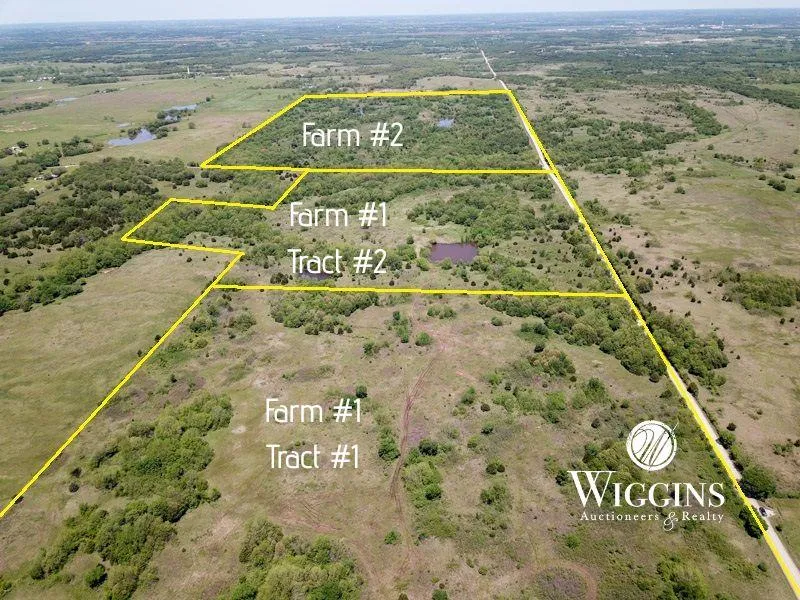 Farm #1 (170 +/- Acres - Offered in Two Tracts): 2 very nice ponds as well as a smaller pond * Access is by Hwy 29 along S. side, good, rocked road along E. side, & blacktop road along N. side Tracts Offered & Order of Auction: Offered in 2 tracts. Tracts will be offered individu-ally & together. Legal Description for Entirety: E/2 E/2 & SE/4 NW/4 NE/4 of Sec. 10, Twp. 2N, R 1 W. of the I.B.M., Garvin Co., OK Tract #1 (80 +/- Acres): E/2 SE/4 Tract #2 (90 +/- Acres): E/2 NE/4 & SE/4 NW/4 NE/4 2024 Taxes for Entirety: were approx. $182.00.