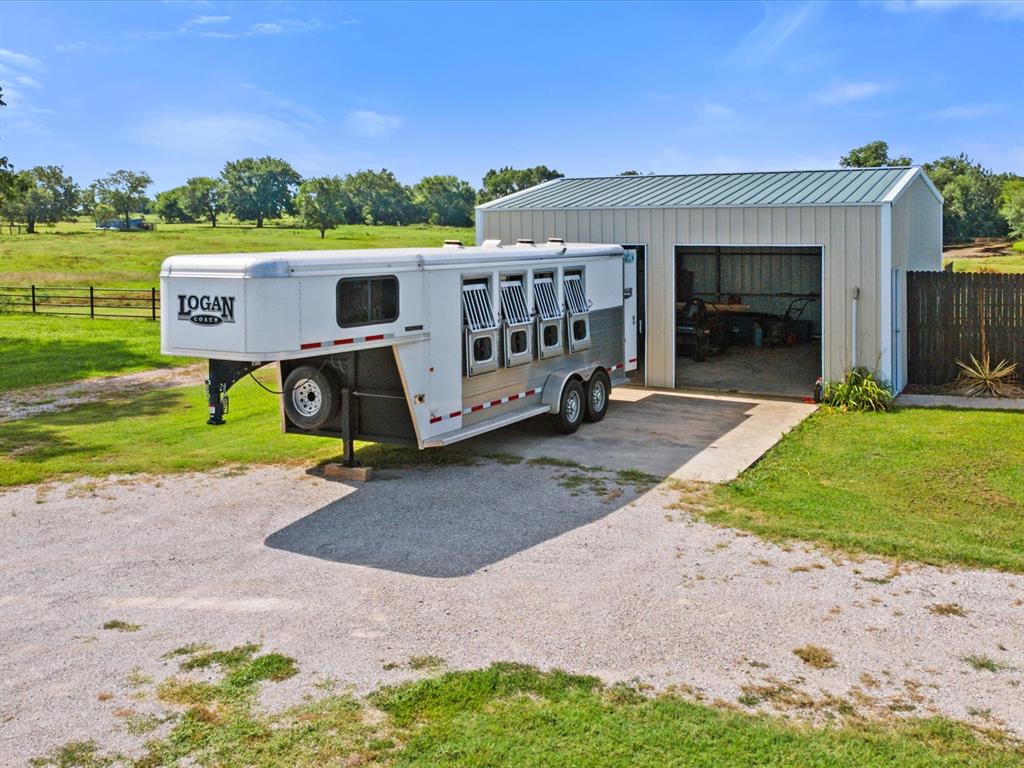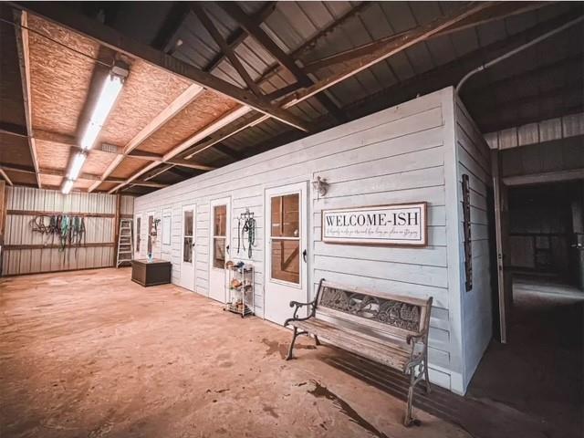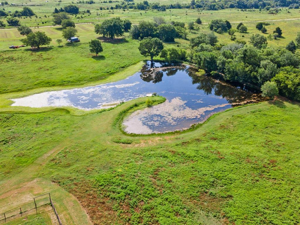 This updated property is ready for the horse enthusiasts or anyone seeking a fully equipped rural setup. The classic 2-bedroom, 1-bath home sits on 20 fully fenced acres and has been thoughtfully renovated inside and out. Enjoy real pecan hardwood floors throughout, an open-concept layout, and a spacious covered back porch that flows into a fenced backyard—perfect for relaxing or entertaining. Originally remodeled in 2017, the home received additional upgrades in 2024, including all-new interior paint and updated exterior siding in 2023. A storm shelter offers added peace of mind, and a 50-amp plug is available for RV or trailer hookups—ideal for guests or travel prep. Equine-ready and designed with care, the 30x40 main barn features a 28x40 addition, 4 horse stalls with individual 10x20 pipe runs, and a central 60x60 pipe pen. The barn includes a climate-controlled tack room, wash room with hot water, feed room, utility sink, ceiling fans throughout, and concrete floors with drains for easy cleaning and maintenance. A detached 2-car garage with concrete flooring adds even more storage and functionality. For those who love the outdoors, the 1.5-acre stocked pond offers a peaceful spot to fish or unwind. With unrestricted land use, this property provides the freedom to live, work, and ride on your own terms. Pre-approval or proof of funds required to schedule showings!
