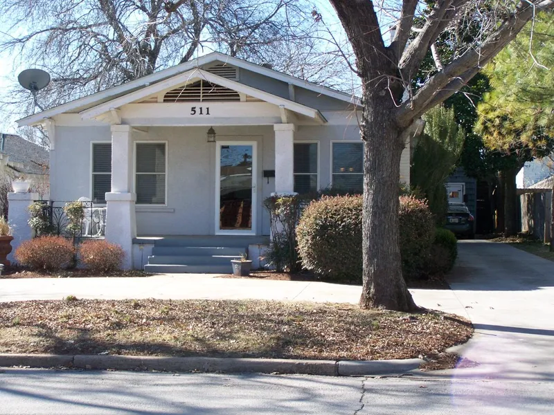 Located on tree-lined streets between town and park, has circle driveway, 2 bedrooms, 2 bathrooms, shiny wood floors in the living room and a fireplace. Kitchen has tiled backsplash, gas cook stove, dishwasher, island, built-in china cabinet, breakfast area, den, master bath has marble tiled shower.