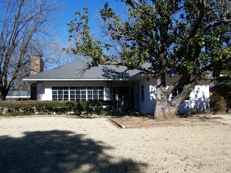 2 bedrooms, Possible 3 bedroom, 2.75 bath home, plus formal living room and den. Formal living room has been converted to master bedroom-needs closet but there is space to build one or put door to existing hall cedar closet, has fireplace & sitting area. All rooms are spacious, hall bathroom(hot water not hooked up to sink-needs to be run from tub), N. Bdrm. Has beautiful tiled bath with step-up shower. Kitchen has an abundance of cabinets and counter space. Some counters are marble tiles, tiled backsplash, bar, desk, log fireplace, patio doors, sunroom, 2 car garage with extra work space, dog house/shed on east side, fenced yard, private patio. Property line is middle of driveways. Total electric except for heater.