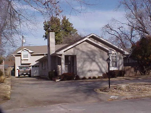 Walking distance to park and town! First floor has entry that opens to living with cathedral ceiling, large enough for 2 seating areas, gas log fireplace, dining area at one end. Neat kitchen has dishwasher installed in 2010, elec. cook stove, rollable island, archway that leads to den. Master bedroom is large with louvered closet doors, bath with shower & built in drawers. Off den is sunroom/game room which opens to a railed deck. Off back of den is really nice utility room with cabinets, room to leave ironing board set up. Dbl. garage, dbl. paned windows, 2-zoned heat and air, one unit is nearly new. Backyard is privacy fenced, has concrete pad for picnic table, tastefully landscaped, paper shell pecan tree. New roof installed in June of 2014.