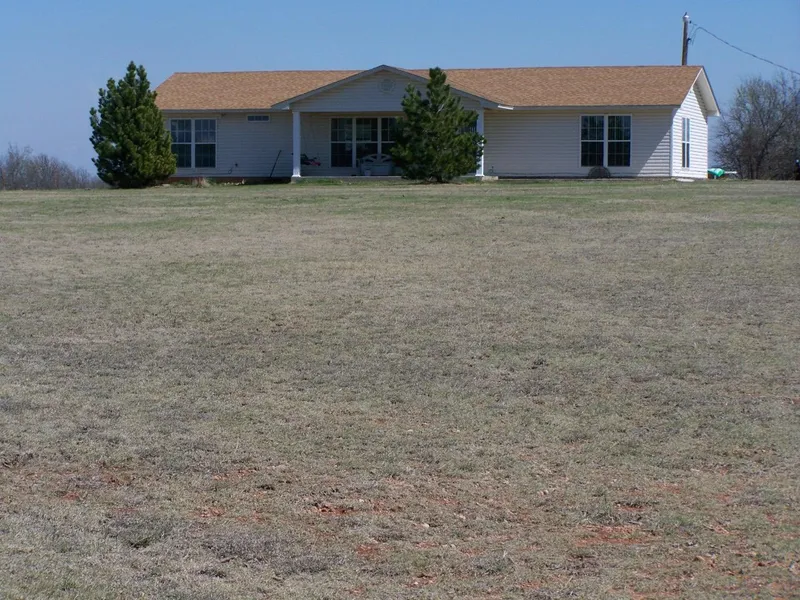 3 Acres Hilltop View with white vinyl fence across front. Built in 2008 with 1612 sq.ft., Home is open & airy with 2 bedrooms & 2 full baths. Master bedroom has a sitting area with large walk in closet. Master bath has a jet tub and a step-in shower. Living/dining/kitchen all open. Kitchen has island, patio doors, ample cabinet space, fridge, cookstove, washer & dryer all remain. Utility room is off kitchen, total electric (REC), Rural water #4, Wynnewood School dist. Only 5 miles to Pauls Valley, 1 mile to Hwy. 29.