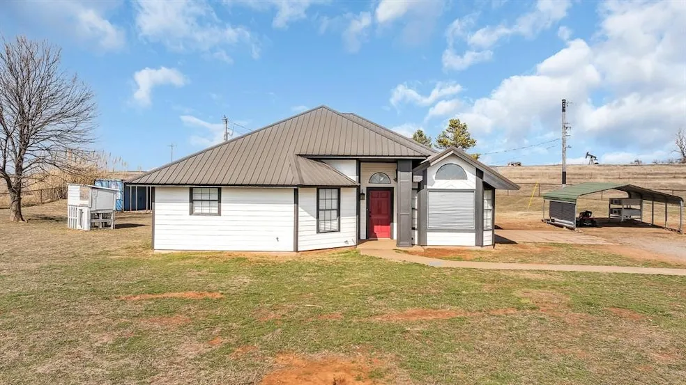 Welcome to this beautifully updated country home in Lindsay, offering the perfect blend of modern amenities and farmhouse charm. This 3-bedroom, 2-bathroom residence has undergone extensive recent renovations to provide comfortable contemporary living while maintaining its rustic appeal. Step inside to discover fresh paint throughout, new flooring, and soaring 10-foot ceilings that create an open, airy atmosphere. The kitchen showcases stunning granite countertops, stainless steel appliances, and abundant cabinet space, complemented by a charming shiplap breakfast bar and separate dining area. The master suite features a generously sized bathroom with new vanities and updated tile work in the shower/tub area, plus a spacious walk-in closet. Recent upgrades include a new HVAC system, metal roof, updated lighting fixtures, newer hot water heater, and blown-in insulation for enhanced energy efficiency. A large laundry room adds practical convenience to daily living. The outdoor space is equally impressive, with secure gated entry, pipe and barbed wire fencing throughout the property. A refreshing pool with deck provides the perfect summer retreat, while a two-car carport offers covered parking. Additional features include a chicken coop and a connex storage container for extra storage needs. This property represents the ideal opportunity for those seeking a move-in ready home that combines modern updates with country living. The thoughtful improvements and attention to detail make this house an exceptional value in the Lindsay area.