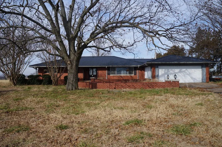 There are beautiful hilltop views on this property with two homes. It offers a pond, pipe fencing, a paved driveway, storm cellar and a covered patio. The three bed, two bath, office, two living rooms and two car garage brick home is partially renovated. With Phase 3 electric at the road this would be a excellent place for a nice shop/barn. The square footage is from court records and includes both homes. The 10 acres MOL is to be determined by a survey.