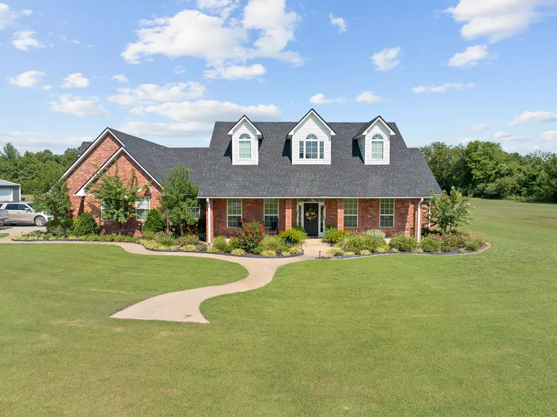 5-bedroom, 2.5-bath home on 10 acres, offering the perfect blend of privacy and convenience. Located just outside city limits but sitting right on the edge of town, the long driveway creates a secluded feel while still providing quick access to amenities. The flexible floor plan includes a 5th bedroom that could serve as an office with double doors opening to the entry hall, plus an upstairs bonus room-style bedroom. The main living area features vaulted ceilings and an open flow between the kitchen, breakfast nook, and living room, with a separate formal dining space for gatherings. The kitchen is equipped with granite countertops, an eat-in island, pantry, and plenty of workspace. The primary suite offers a relaxing en suite bath with a whirlpool tub, separate walk-in shower, and ample closet space. Additional highlights include a large laundry room with storage and sink, a storm shelt...