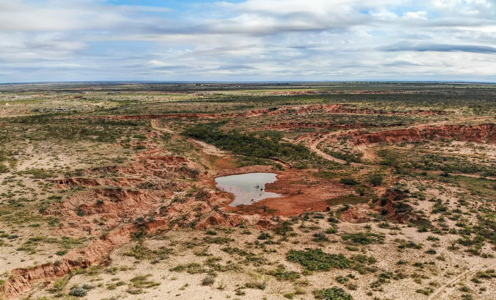 The Falls Creek Ranch has a diverse terrain, ranging from nearly level to gently rolling, with areas of rougher broken country. The north section of this ranch has a mostly level terrain. This area of the ranch has extensive oil production. The south two (2) sections become more rolling and broken, giving this area of the property a much more scenic appeal. Falls Creek, and several tributaries of this creek, meander through the south two sections of this ranch. This creek runs through the ranch in an easterly direction, eventually spilling into the North Fork of the Double Mountain Fork of the Brazos River which is approximately 2.5 miles east of the ranch.