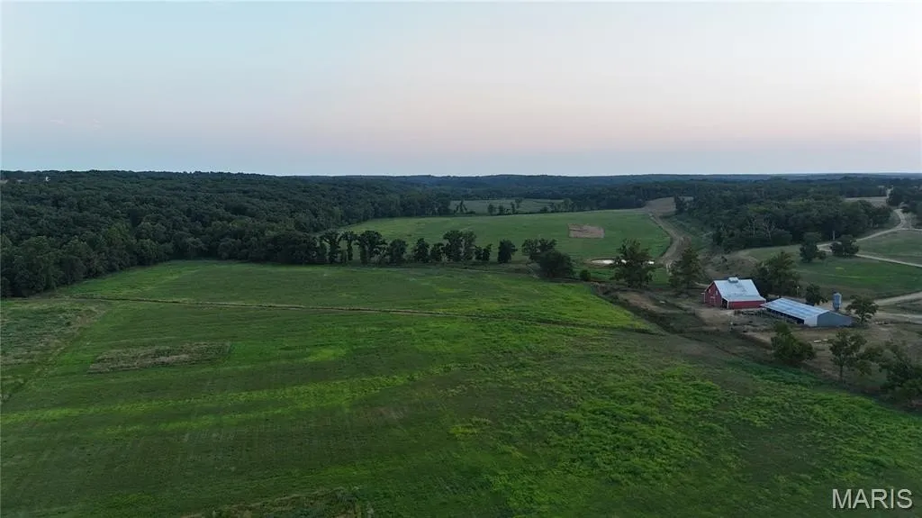 Beautiful 157.07 acres in Gasconade County, has approx. 95 acres of flat bottom fields along Dry Fork Creek. Creek runs throughout the length of the property. Fields are in grass now and could be converted over to row crops. Farmer in place could do either one. 1 large barn and 1 open equipment barn with well, electric & stock waterers. Has great building site overlooking the bottoms. Quarter acre spring fed pond stocked with bass, bluegill & trout.