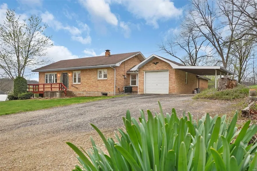 Welcome to this charming 3-bedroom, 2 bath home situated on a picturesque, 1 acre lot, just outside city limits. Boasting a wrap around deck, 1-car garage, carport, and spacious 20x11 workshop with electric, ideal for hobbies or storage. Inside, you ll find stunning architectural details of arched corner ceilings and entryways. Main floor features brand new carpet in bedrooms, fresh paint throughout and beautifully renovated kitchen is a true highlight, with custom cabinetry, stainless steel appliances, soft-close drawers, granite counters, a double sink, and durable LVP flooring. Spacious eat in dining off open kitchen. 3rd bedroom converted to MF Laundry for ease! The lower level is a versatile space with a second kitchenette, living room, and full bath, or easily convert it into a 3rd bedroom. Attic space could easily be completed for more space! 2019 Updates include new windows, water softener, high-efficiency HVAC system. New water heater and septic system (2025). Selling as-is. Suitable for Bed/Brk