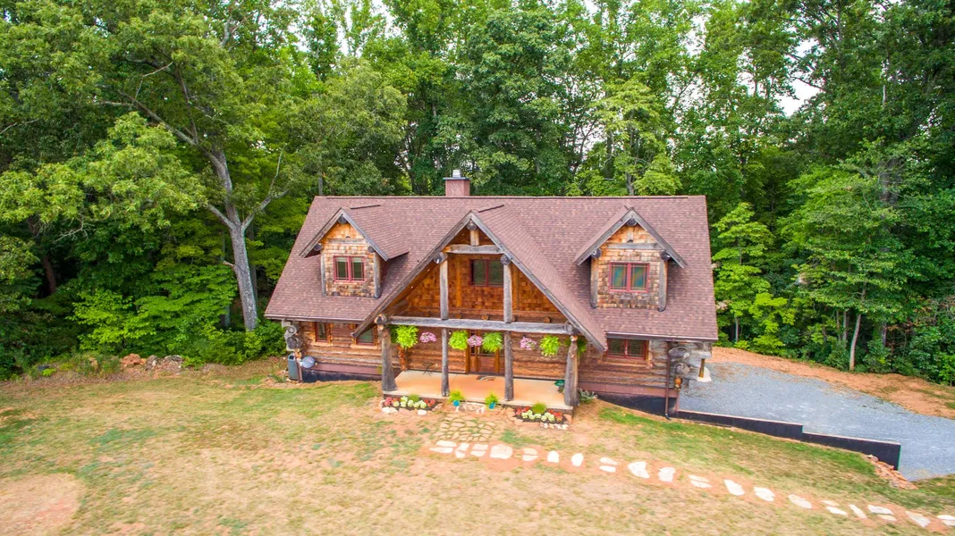 Situated on the high point of 12.9 private acres, this custom, handcrafted log home faces rolling pastures and meadows and backs-up to a large stand of hardwoods. Constructed from 1st generation Western Red Cedar logs imported from the Northwest coast of Canada, the home combines the natural rustic appeal of a log home with urban elegance features throughout. Built by Chilliwack Mountain Log Homes, Ltd., British Columbia, each log is hand peeled, hand cut and custom hand-fitted.