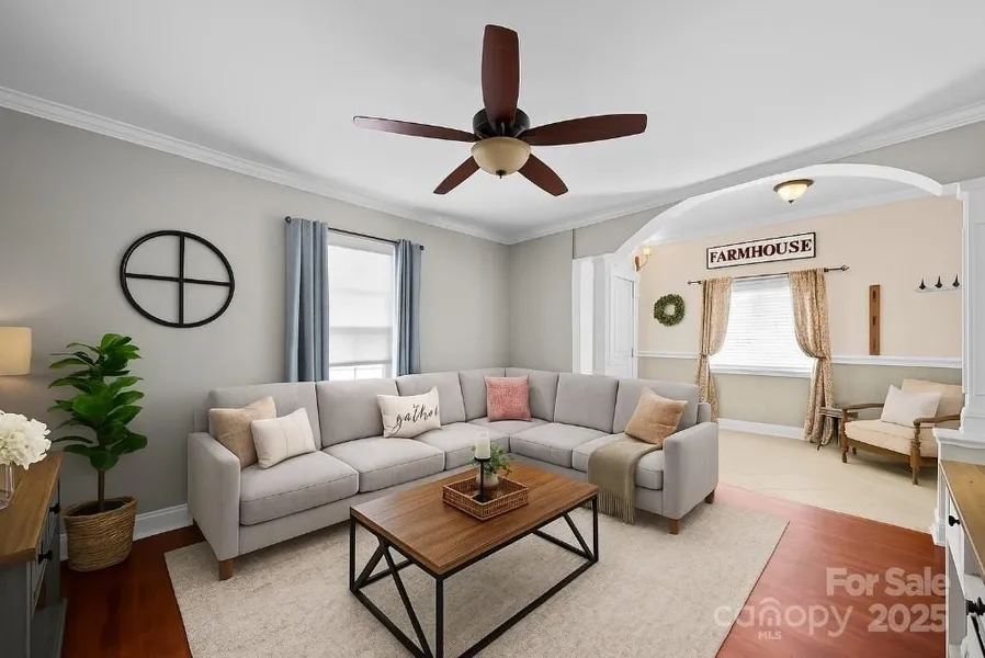 Step into this beautifully updated home in the heart of Cramerton that combines classic character with stylish upgrades. The spacious kitchen features open shelving, updated cabinetry, warm wood countertops, and stylish pendant lighting-ideal for both everyday living and entertaining. The open-concept dining and living spaces are filled with natural light, highlighted by vinyl plank floors and timeless finishes. The neutral palette makes it easy to imagine your personal style while offering a move-in ready feel. The bedrooms provide a cozy retreat, featuring fresh paint, elegant trim, and ample closet space. Throughout the home, you'll notice thoughtful details like crown molding, updated lighting fixtures, and farmhouse-inspired accents. Enjoy the convenience of a dedicated laundry space, plenty of storage, and a layout designed for comfort and functionality.