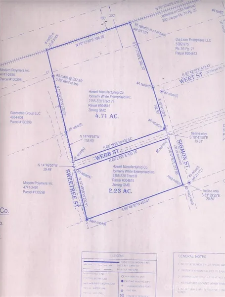 The property being sold is parcel 310047, which contains 4.71 acres. The seller has a recent survey with a copy attached. The zoning is GMC with the city of Cherryville. This property was previously the Howell Manufacturing property. There is no existing building on site.
