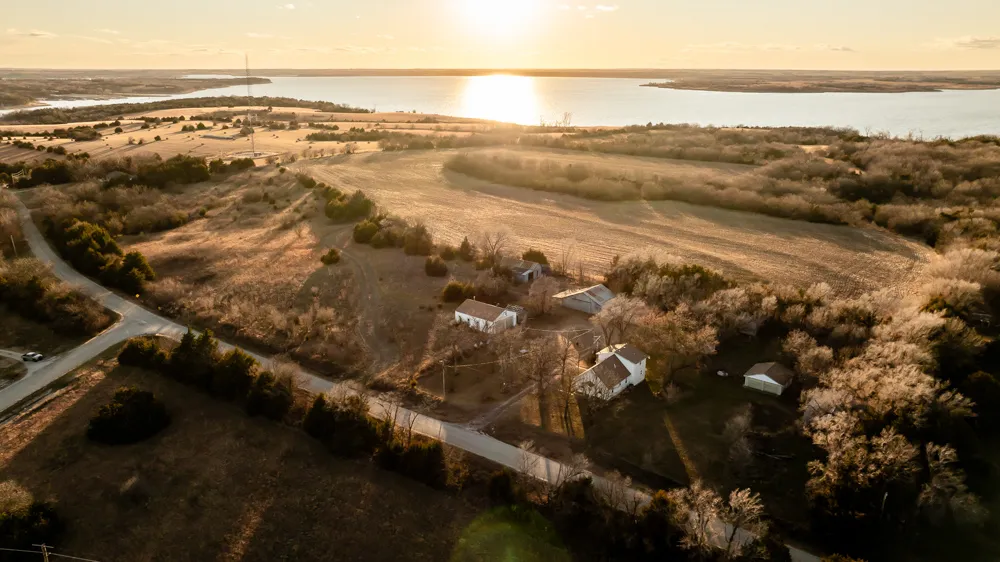 The property also has many outbuildings including a 24'x24' two-car detached garage, a 30'x41' machine shed, and a 28'x58' barn. The property is located on a hard surface blacktop road. The property has over 70 feet of elevation change which creates some of the best sunset views overlooking Milford Lake! Houses with this amount of acreage do not come up for sale very often in this area, don't miss out on this opportunity! For additional information, disclosures, or to schedule a showing, contact Trent Siegle at (620) 767-2926.