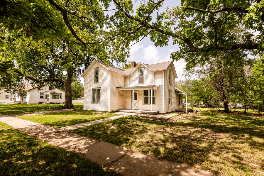 Adorable 1 ½ story home. This 3 bedroom 1 bath home is cute as a button and at this price won't last long. Main floor bedroom and living room have fresh paint, large eat-in kitchen and large laundry/mud room. Two more bedrooms upstairs are very good size. You'll get a lot for your money. Home sits on 2 city lots and has a detached garage. The house has a new roof and gutters, new sewer line installed July 2021 for more information contact Holly Beck with Century 21 Gold Team-REALTORS® at 785.410.7794