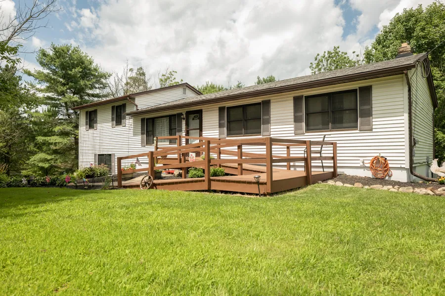 Located off of route 6 in Hambden Township just one mile from Hambden Township Park and 15 minutes from historic Chardon square, this four bedroom, two and a half bath split-level home may be perfect for you! The home has a two-car garage which leads into a partial finished basement which includes a newly remodeled half bath. Much of the living space including the kitchen, living room and the three bedrooms are on the main level of the home with the master bedroom and additional living space located above the attached garage. There are hardwood floors under the carpet throughout the main level. The roof on both the upper and lower levels was recently upgraded within the last five years. Appliances are also being sold with the home including washer, dryer, refrigerator, as well as a standalone deep freezer. This quant home sits in the center of one acre, partially wooded plot with a concrete walkway that leads you through a well-designed labyrinth of garden from the driveway to the front door. The home is handicap accessible with a newly built ramp leading to the front door of the home. A home warranty is included. Make your appointment to get a closer look at this hidden gem today!