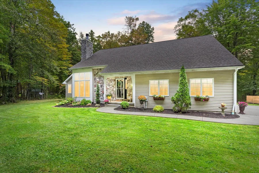 modern lighting, large entertaining area, two acres and privacy is just a small glimpse of what this beauty brings! Entering the living area boasting in size with vaulted ceilings, floor to wall widows, wood burning fireplace leads directly to the kitchen and dining area. A chefs dream with an abundance of custom soft close cabinetry, quartz countertops and very open. Get your creative recipes ready! First floor master being grand in size with attached full bath and slider leading to the rear deck. The extra wide staircase leads to the second level with three additional bedrooms including the second master. with more hardwood flooring attached bath and walk in closet. Definitely a bonus! Lower level can be converted to media or kids play area with plenty of storage space. Backyard being very flat with rear deck is a perfect place to watch the deer, turkey and bunnies run by as you unwind after a long day. More great features include first floor laundry, two car attached, newer driveway, all appliances included. Also comes with a home warranty.!