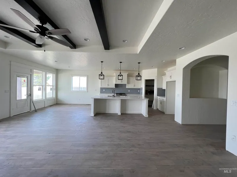 WOW! Sunrise Homes Newest Model "The Owyhee" feat: a 14'x40' RV bay! The Cook will Love the 10' Designer "Island" Kitchen, opening to a traffic free Great Rm w/adjoining oversize Dining Room. Generous size Bedrooms, Master Suite & "Pocket Office/Tech Room" complete this floorplan! All Sunrise Homes Standard Upgrade Amenities include: 9' Ceilings, Gas range-all tile baths & Laundry. Home backs up to field. *Photos Similar*