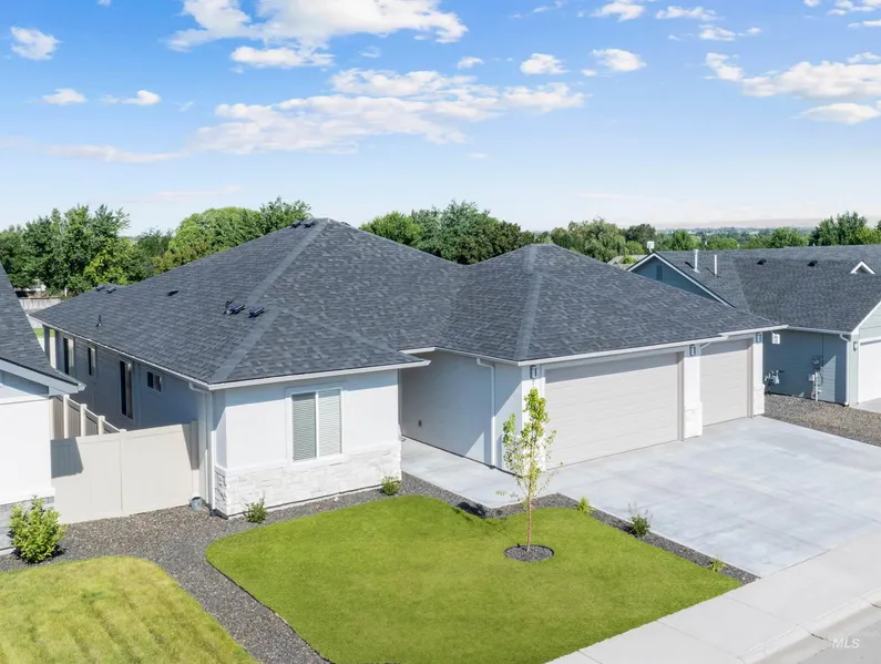 Motivated Seller! Drastic $17,500 Price Reduction! This custom home is thoughtfully designed, contemporary 1693 sq/ft single level floor plan that features 3 spacious bedrooms, 2 baths and a generous 3 car garage (third bay is 30' long). Oversized garage, with garage door openings at 8ft high. Stucco and river rock elevation. The interior is finished in clean, bright color selections that make for easy living in a stylish, modern home. LVP flooring in main living areas, Carpet in Bedrooms, Tile in Bathrooms, oversized Kitchen Cabinets, gleaming Quartz counter tops, Stainless appliances, brushed Nickel fixtures, 10ft ceilings in living room, dining area and master suite, 9ft ceilings in the rest of the home. Recently installed - whole house water filtration system and garage insulation. Situated in Legacy Heights subdivision, a convenient location surrounded by majestic mountain scenery and close to all of the amenities that Gem County has to offer!