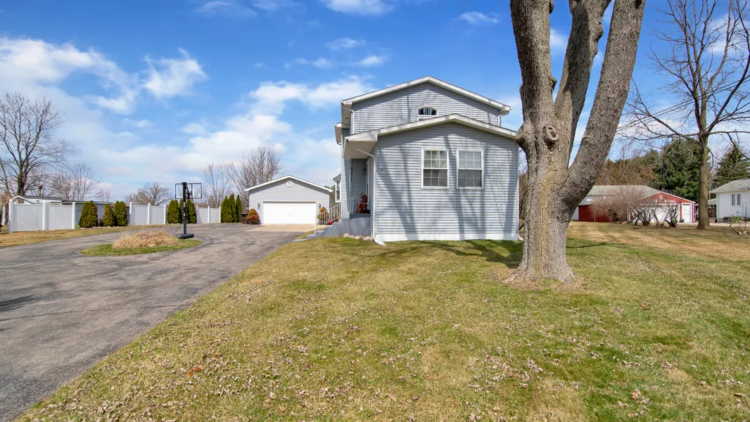 This beautiful home has been completely remodeled in 2005! Maintenance free exterior two-story home featuring a large kitchen with stainless steel appliances. Solid oak floors with carpeted bedrooms. Large open floor plan. Four bedrooms with the master suite featuring a master bath and walk-in closets. Backyard oasis with maintenance free composite deck and above ground pool. Two and a half acres with a park like setting.