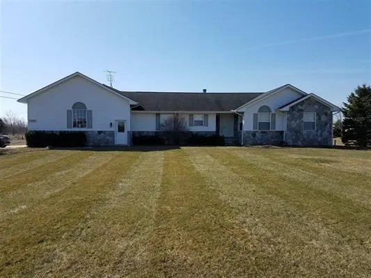 Great 1,400 sq.ft. ranch with 3 bedrooms and 2.5 baths sitting on 3.4 acres plus attached 4 car garage with electric vehicle charging station! Spacious open floor plan - kitchen and dining area open to the great room. All appliances are included in sale. Great room features a natural fireplace and there is access to the patio from the dining area. Master bedroom has walk-in closet and private bath. There is also a second full bath off hallway for guests or other family members. Guest bath off great room also serves as first floor laundry room. Unfinished basement is ready for your finishing touches! Garage is approximately 41 feet wide and 28 feet deep with 8 foot high garage doors, separate electrical panel and 220 volt in garage, and large cement apron approach - plenty of room for a workshop! Custom built in 2004 - municipal water and septic system, reverse osmosis faucet at kitchen s...