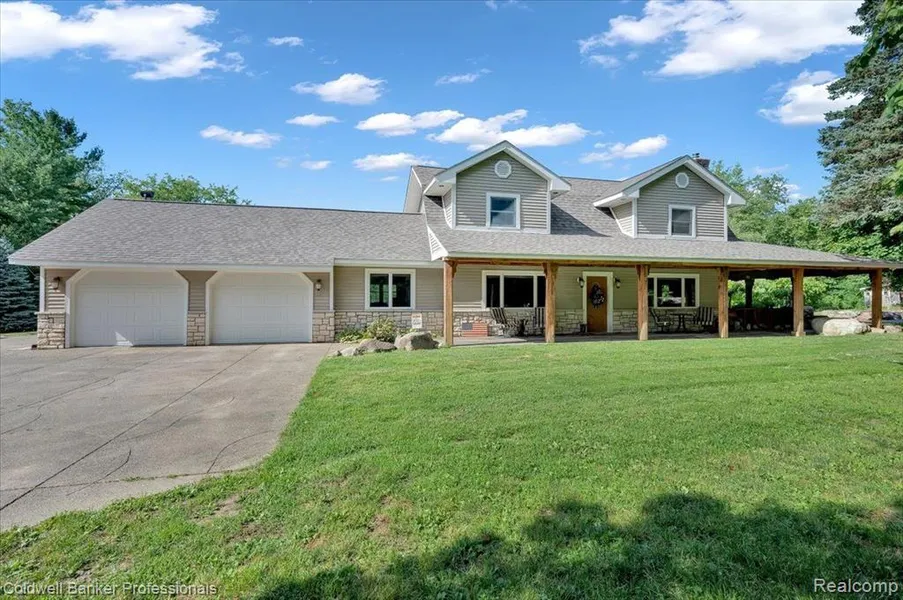 Fantastic home situated on 6 amazing acres. This custom build features newer windows (Anderson), Wrap around porch with 16x40 outdoor kitchen. Upstairs laundry, new furnace, new ac, new electric panel, back up generator, New well line, tank and pump and a 2 car finished heated garage. The exterior of the home offers 4 separate out buildings. A 30x40 finished heated barn, 8x12 chicken coop with water electric, 10x16 barn insulated with electric and heat, 10x10 custom deer blind insulated with electric, gorgeous decorative concrete around house and fire pit and a Sprinkler system on 4 acres Dont miss out. Buyer, buyers agent to verify all information
