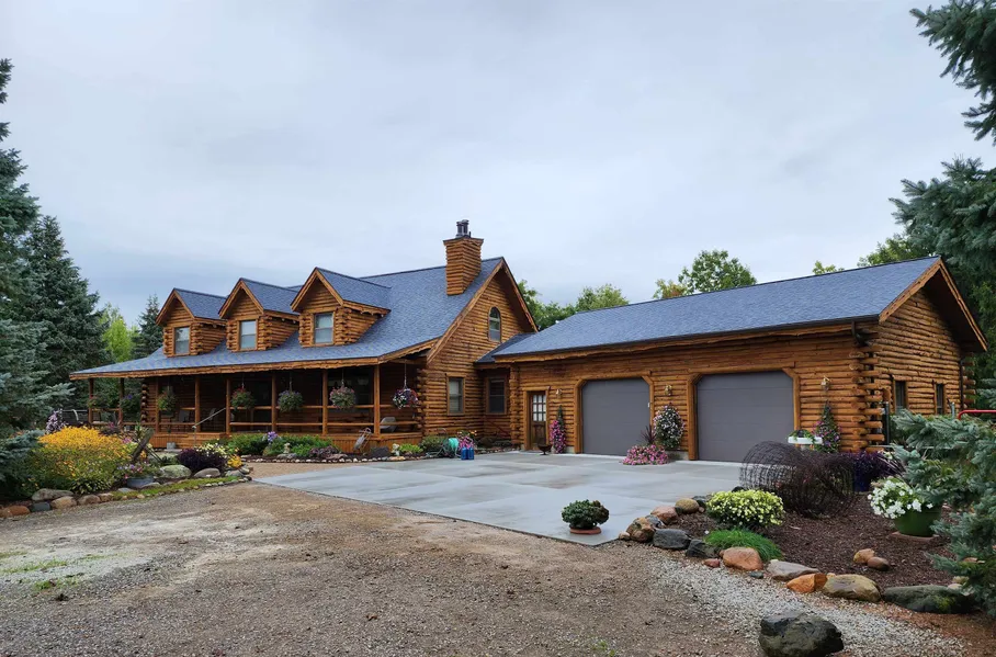 Wonderful secluded, custom log home. New roof, newly stained exterior, new cement, with marvelous landscaping. Amazing view with endless wildlife and rustic charm! Set on 6+ acres, two pole barns, fenced back yard, and 3 burning stoves. Easy access to I-75 and I-475. 2 kitchens, 3 baths, and all appliances included.Agent owned and has a home warranty