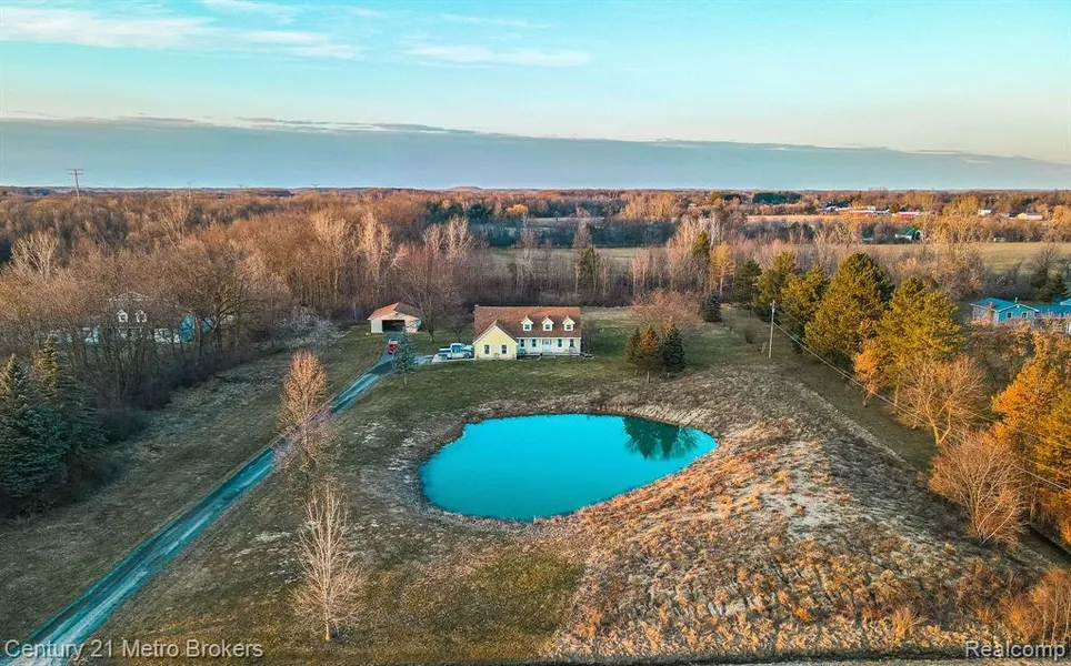 Welcome to your tranquil country retreat! Nestled on 5 acres of picturesque land, this charming home offers the perfect blend of serenity and convenience. This spacious home boasts 4 large bedrooms, providing ample space for family and guests. A large basement with lots of storage and large play area with loads of potential. This home also has a new furnace, hot water heater and AC unit from 2021. With a 30x40 pole barn, you'll have plenty of room for storage and hobbies. Featuring a breathtaking 20-foot deep stocked fishing pond, perfect for relaxing afternoons spent casting a line or enjoying serene waterfront views, surrounding the pond, you'll find a colorful array of wildflowers in the summer. Don't miss your chance to own this slice of country paradise!