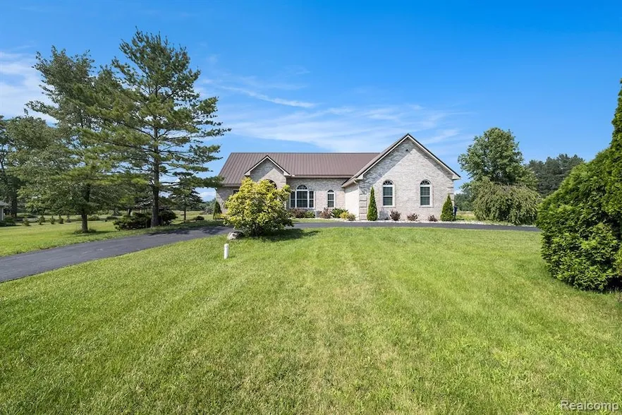 Welcome HOME! This spacious and inviting ranch sits on 8.62 acres of beauty built in 2019. Offers an open and spacious floor plan throughout the home with this concept flowing between the kitchen featuring granite countertops, under the counter lighting, a stylish backsplash and an appliance package that stays with an easy transition to the Great Room with gas fireplace and access to the deck for outdoor entertaining! The open space of the main floor has 3 comfortable bedrooms including a primary suite and bath with double sinks, walk-in closet. Can't forget the first-floor laundry, finished walk up basement with huge family room and one-half bath, large mechanical storage area. Circular drive... Two car side entry attached garage plus an additional detached two car garage,... ideal for your toys!!! Whether you're seeking tranquility or entertaining possibilities this home delivers!!!! B...