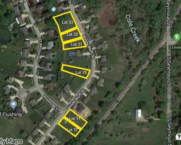 ONLINE REAL ESTATE AUCTION July 9, 2019 from 8 am - 7 pm. Opening Bid only $1000 for each lot. Online Real Estate Auction featuring 6 total building sites being offered individually or in combination that will sell in the manner which brings the highest bid. Situated on the southwest side of Flushing, these lots represent nearly all the remaining lots in Cole Creek Meadows Subdivision. Please see our website for more info, photos, and terms.