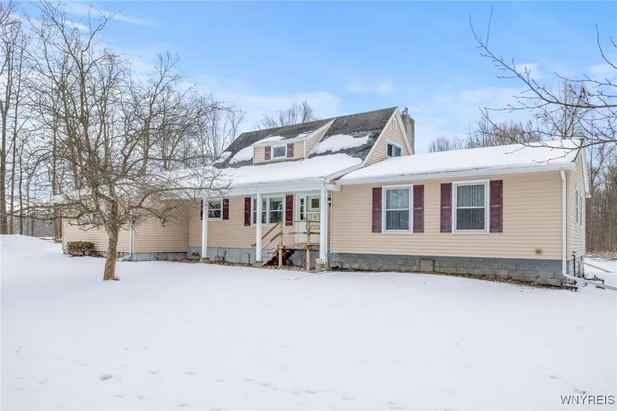 One-of-a-Kind, Residential Opportunity in a Great Location! This unique, custom-built home offers one-floor living with 3 finished bedrooms and 2.5 baths on the main level, plus the potential to finish 2 additional bedrooms and a bath upstairs to fit your style. The existing, first-floor primary suite could also be an in-law suite. The full basement, with newer mechanics (HTW 2019, Furnace 2021), is plumbed for yet another bath and ready to be transformed into more living space, recreation room, a workshop, or storage. The home features an attached 2-car garage and a detached 2-car outbuilding as well as a shed for extra workspace and storage. Enjoy two custom, stone, wood-burning fireplaces and a natural gas well with a transferable lease, providing free gas for the owner. Nestled on nearly 20 wooded acres, the property feels like a private retreat but is just minutes from major routes and less than 5 miles to the center of Batavia. Plus, public water is coming soon/confirmed for Water District 5, Town of Bethany! Located in the Pavilion School District, this is the perfect opportunity to create your dream home in a peaceful, country setting close to lifestyle conveniences. Bonus: potential to create an additional building lots on the Mayne Road frontage of the property.