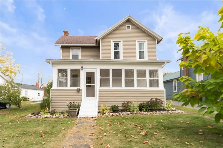 Transparent pricing and updates galore!! Welcome home to this 3 bedroom, 1 bath charming village home. Plenty of first floor living space with updated kitchen, formal dining area, living room and cozy family room with gas fireplace. Hardwood floors throughout! First floor laundry added for your convenience. Furnace, hot water tank, electrical panel, windows are less than four years old. The backyard patio recently for outdoor addition entertaining space. Sit in your enclosed porch and watch the season change. The side walk lined street leads to Main Street Le Roy and a beautiful view of the village water fall. Come see her!