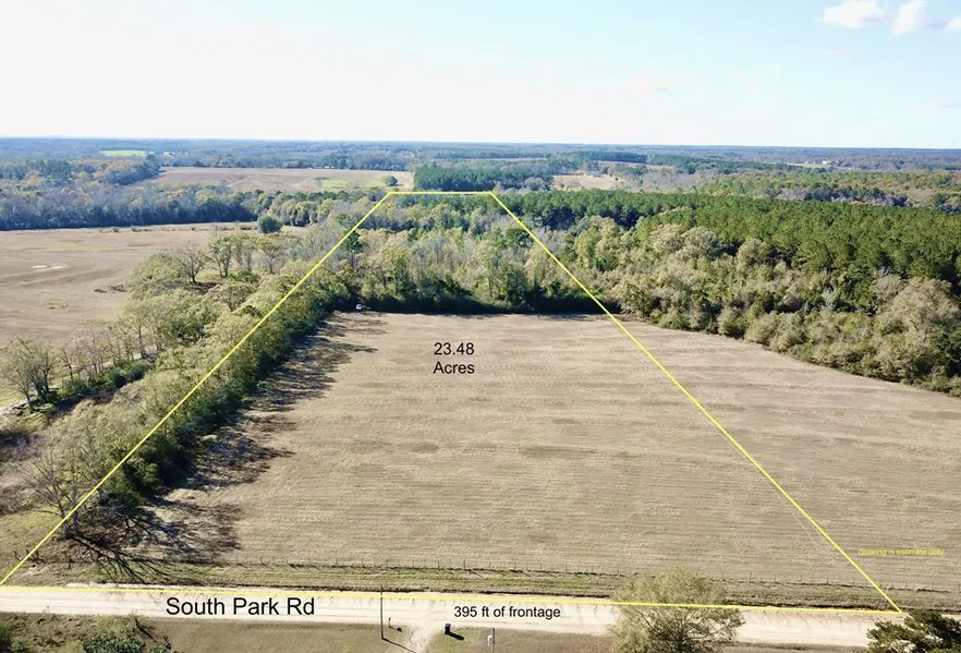 23.48 Acres UNRESTRICTED on South Park Rd with 395ft of Road frontage and Spectrum High Speed Fiber Internet. Located 11 Miles South of Dothan, AL. Near the Fadette community. 5 Acres on the front is open pasture the remainder is wooded. Holmes Creek runs a few feet from the border of this property with several good pond sites. 3 sides of this property are fenced with some cross fencing. There is a great trail system through the hardwoods and planted pines. Located in Geneva County .3 miles to the Houston County Line. Half a mile to Mcallister Rd. 1 Mile to Hwy 4 (Junction Rd). 2.5 Miles to Dollar General and the wonderful Fadette Convenience Store ( great lunch and breakfast). 3 miles to FL. 5 miles 20 miles to I10. 50 miles to Panama City Beach International Airport. Seller has AL Real Estate License. Drawings are estimate only. Recently surveyed and the corners are marked with white P...
