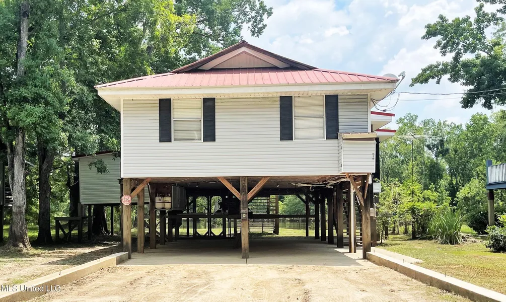 **LAKE FRONT** Well Maintained and FURNISHED, 2 bedroom, 1 bathroom Camp in Plum Bluff Estates. Spacious covered back porch with tons of storage. Relax in the sun room while watching the kids and pets play in the fenced back yard or fish from your private pier. No worries about carrying weekend luggage or groceries, this property is equipped with a UTILITY LIFT! The separate shop across the breeze way from the sunroom could also be used for extra storage or converted to additional living space. Property has a private water well with a water purification system. All property owners can have access to other lakes and private sandbars.