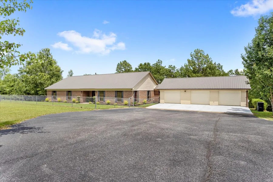 Charming 3-Bedroom Brick Home with Pool, Shop & More! Welcome to your dream property nested on 2.78 acres! This beautifully maintained brick home offers 2,800 sq ft of heated and cooled living space (3,870 sq ft total under roof including porches), perfectly blending comfort, functionality, and outdoor enjoyment. With 3 spacious bedrooms and 2 full bathrooms, this home features modern upgrades throughout and a host of amenities to make life easy. A 3-car attached garage offers additional space for vehicles and storage. Step inside to find LVT flooring throughout the main living areas, with tile in the bathrooms for durability and style. The recently remodeled kitchen shines with granite countertops, freshly painted cabinets, a gas stove, and a walk-in pantry—ideal for home chefs. Cozy up by the gas fireplace in the main living area or enjoy the extra space in the large media room, which could easily be converted into a fourth bedroom. The master suite boasts a large walk-in closet and a luxurious walk-in shower. Electric heat pump, tankless water heater, and energy-efficient features keep you comfortable year-round. A washer and dryer are included for added convenience. Outside, entertain in style on the expansive 1,500 sq ft rear wood deck and screened porch, overlooking an 18x36 above-ground pool—perfect for summer fun. The property is fenced on three sides, with a dedicated front yard fence for pets. Blueberry bushes add a sweet touch of country charm. Car enthusiasts and hobbyists will love the massive 1,600 sq ft metal shop, complete with power doors, a car lift, whole-shop air compressor, 1/2 bath, and a fish cleaning station on the back. The original metal roof has been recently refreshed with new paint and screws, ensuring years of durability and low maintenance. Don't miss this rare find—your private retreat with room to grow, work, and relax is waiting!