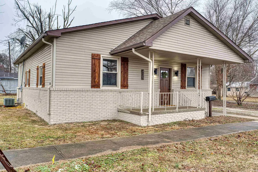 Spacious and well equipped describes this renovated 2 bedroom home with Detached 2 car Garage! Large rooms, solid surface laminate flooring, dedicated laundry room and full custom handcrafted kitchen! The kitchen is a cook's dream with handcrafted cabinets handmade in Montgomery Indiana, soft close doors and drawers, brand new stainless appliances that include a smooth top range, dishwasher, microwave/hood, and a refrigerator with ice and water in the door! Luxury finishes include built in pantry storage, open shelving, single bowl farmhouse sink and brushed gold cabinet pulls! Updated bath with built in linen storage and large laundry room that can be conveniently closed away for tidiness! Outside, you'll find plenty of parking in the circular driveway, a large storage shed, large lot with flowering specimen trees, and a detached 2 car garage with enough space for a workshop! New wood-look garage door, fresh paint inside and out, new furnace, new farmhouse shutters and updated entry doors! Covered front and back porches and located within walking distance of stores and services. Seller is providing a 1 year AHS Home Warranty for Buyer peace of mind.