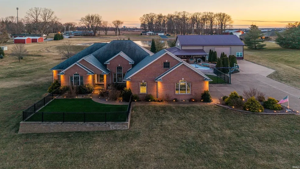 DON'T MISS THIS RARE FIND!! This AMAZING Haubstadt, IN, property not only sits in a premier location but comes with all of the following: A great neighborhood, spacious floor plan on the main level as well as a finished walkout basement, a 60 x 40 Pole Barn that parking and storage dreams are made of, including second story storage as well as a finished kitchenette and entertaining space complete with its own bathroom perfect for your pool parties and guests! Also included is an outdoor kitchen complete with grills, a "big green egg," covered patios, and not just 1 oversized saltwater heated pool but a 2nd kidney shaped salt water pool as well. ALL of this sitting on just over a 1 acre lot. Not to mention new pole barn solar panels (45) with Tesla inverters (2) AND the new large pool automatic pool cover. In addition, don't miss the huge custom built firepit that seats more than twelve o...