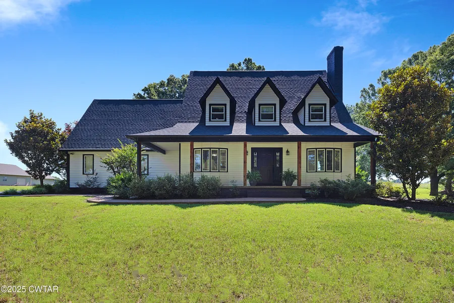 Come home to the ultimate serene country living in this stunning 4-bedroom, 3-bathroom home for sale in north Milan, Tennessee! Situated on 1.4 lush acres, this stylish black & white aesthetic 2,859 sq ft home backs up to 70+ acres of crops and a neighboring 50+ vacant acres for added privacy and uninterrupted views . Enjoy the best of indoor-outdoor living with an inviting full-length front porch and a spacious rear cedar covered patio, complete with an included hot tub. For the kiddos, or kids at heart, the trampoline and playset also convey, making this a perfect haven for families or those who like to entertain. The open-concept living area features hardwood floors, a gas fireplace with wooden mantle & hearth, and an entertainer's kitchen with a large island, white quartz countertops with subtle veining, stainless steel appliances, pantry with built-in shelves, & storage closet. Retreat to the private upstairs primary suite offering a private bathroom with whirlpool tub and a closet with built-in gun safe. An additional downstairs bedroom features a safe room with a gun safe that also stays with the home. A spacious bonus room upstairs with high ceilings provides flexible living space and would be great as a game room, movie theater, playroom, etc. So much room for activities! Beyond the main residence, this property offers exceptional amenities, including a 2-car attached garage with secondary laundry hookups (for those with stinky work/hunting/sports clothes) and an additional 2-car detached garage with a rear overhang-ideal for your boat, ATVs, and side-by-side. The detached garage has wiring for a welder for hobby and/or business related activities and there is a spot to hookup a generator to backfeed to the house in case of weather-related power interruptions Enjoy lower utility bills with a private well and septic system, plus the advantage of no city taxes and an only one-year-old roof. There is an underground fence for pets. Don't miss this unique opportunity for privacy, luxury, and country charm.