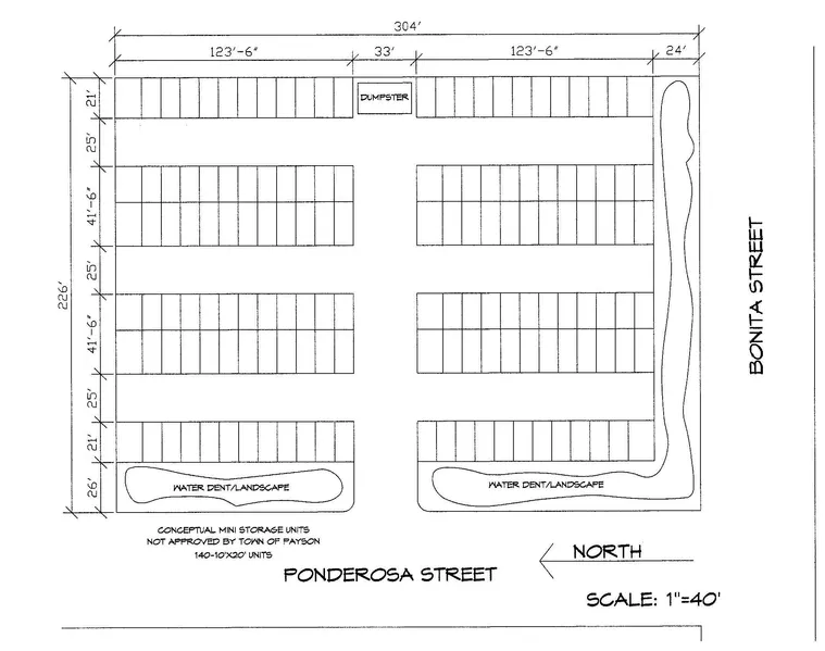 With Payson needing affordable housing and already having some improvements in the ground, this level, 1.58 acre parcel Located in the center of town, is the perfect opportunity for a Developer, Contractor, or Investor! This property includes a site plan for 26 Condominium Units approved by the Town of Payson. SEE DOCUMENTS SECTION for Permitted and Conditional Uses for C1 Zoning. WITH PAYSON NEEDING STORAGE UNITS this level 1.58 Acre Parcel located in the center of town is the perfect opportunity for a Developer, Contractor or an Investor! This property would be the perfect site to build 140 10'X20' Storage Units. The plan is conceptual and would need to be approved by the Town of Payson. SEE DOCUMENTS SECTION for Permitted and Conditional Uses for C1 Zoning.