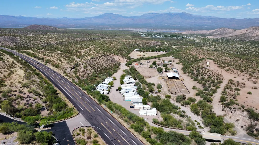 Hay Hook Ranch at Roosevelt is one of the best watered ranches we have ever seen with 27.5 +/- miles of pipeline to 59 troughs and 6 storage tanks, the ranchs 231 AU permit is fully stocked and sits on two PRF grids in Gila and Maricopa Counties, there is also a 172 head yearling carryover allowed for 5.5 months. The 19.24 deeded acres has highway frontage with home, barn, corrals, roping arena and a 17 space mobile home/RV park.