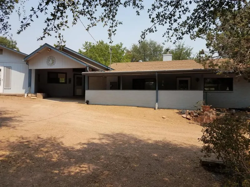 RARE ACRE RANCH-STYLE HOME PROPERTY IN TOWN WITH TALL, COOL PONDEROSA TREES ALL AROUND. COZY FIREPLACE IN THE OPEN-FLOOR PLAN LIVING ROOM. COVERED PATIOS FRONT & REAR. LARGE CABANA OUTSIDE. VERY LARGE CARPORT HAS TWO ROOMS THAT WERE ART STUDIOS AND HUGE STORAGE SPACE. SELLER HAS HAD A NICE PLACE FOR CHICKENS AND GARDEN. PLENTY OF ROOM TO PARK R.V.s , BOAT OR PARKING FOR GUESTS.