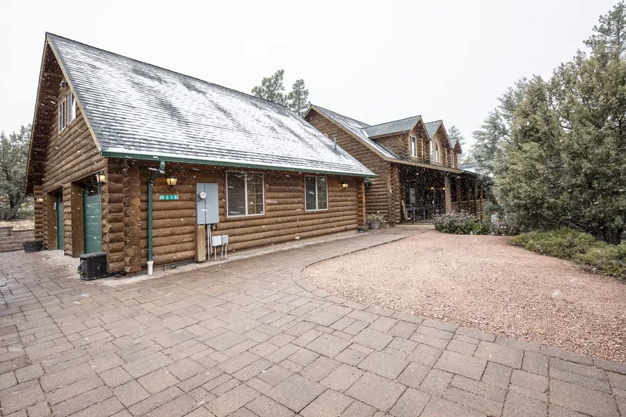 Beautiful custom log home in Pine, Arizona. Mountain views, private setting, covered front & back porch, backing National Forest and deer in your backyard. Large open foyer, wood flooring into open great room, wood burning fireplace with rock accents and large mantle, vaulted ceilings with wood accents, adjacent to large gourmet kitchen, breakfast bar, eat-in dining and formal dining, granite countertops, custom cabinets, large walk-in pantry, washer & dryer in large utility room with ample storage. Master bedroom on main level, large master suite with dual sinks & closets. Two guest bedrooms upstairs, full bathroom with clawfoot tub, skylight, office or hobby room above the garage. Special touches and finishes in and out side of this beautiful home. Oversized garage & work area. Additional features include green house, two A/C units, cat 5 & 6, coax, wired security, eight + TV hook ups, 2500 gallon storage water, geronic generator, trex decking, pavered driveway, landscaped and so much more.