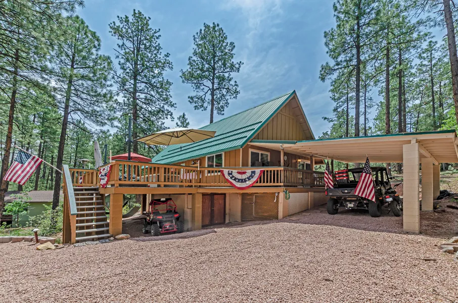 Beautiful cabin on 0.43 acre land, surrounded by tall trees.Lots of storage space throughout the home. Gorgeous granite kitchen counters and outside fire pit.Dual pane windows. The loft has an extra bedroom. Outside storage room for ATV, electric fire place on great room. Each bathroom has own heater.