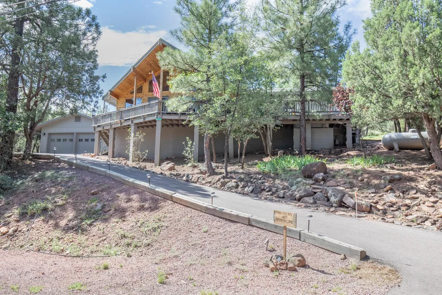 Beautiful 4 bedroom, 2 bath home on quiet cut de sac with an oversized & insulated 2 car garage. Plenty of space for family and friends to gather. Open floorplan with 2 dining areas. Kitchen is a cooks delight with oven/microwave wall unit (less than a year old), cook top & plenty of counter space for prepping or entertaining. Two sided propane fireplace for immediate ambiance. Primary suite includes double sinks, walk in closet and jetted tub. Back yard is complete with kids play area and fenced garden space with irrigation. The front has a large covered deck to enjoy the sounds of nature. The built in hot tub just completes this luxury outside living space. This home is an active and successful short term rental. This is a great opportunity for a full time home, weekend get away