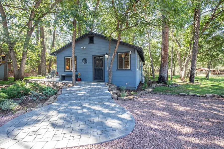 Tranquil setting bordering seasonal creek, shaded by towering mature oaks, pine trees and covered by lush lawn. This get-away has beautiful hardwood floors throughout, massive native stone wood fireplace and T/G ceiling in great room and kitchen. The kitchen has SS appliances and granite counter tops. Bathrooms have been remodeled. Master bedroom with 1/2 bath. The outdoor space is AMAZING -- entertainers dream. Large covered patio with fans, propane fire pit, out door kitchen with mini fridge, builtin grill and griddle. Property has irrigation system with smart timer and multiple watering zones. This is a special property and it comes with the furniture (all but white cabinet in kitchen)-- you won't want to miss!
